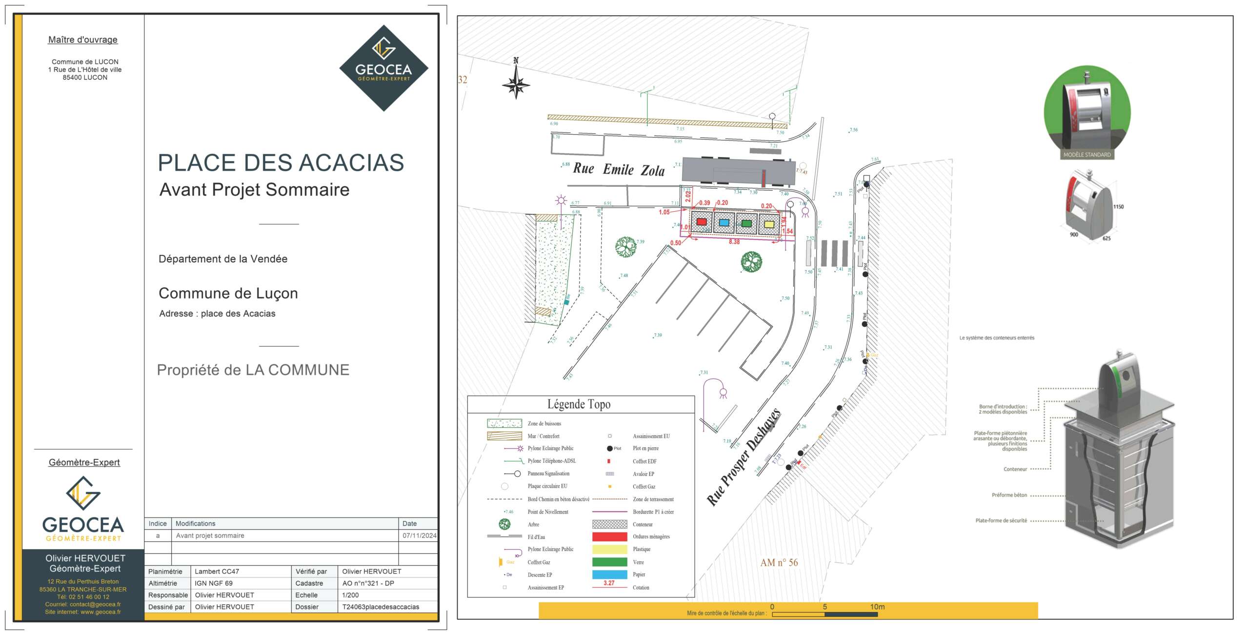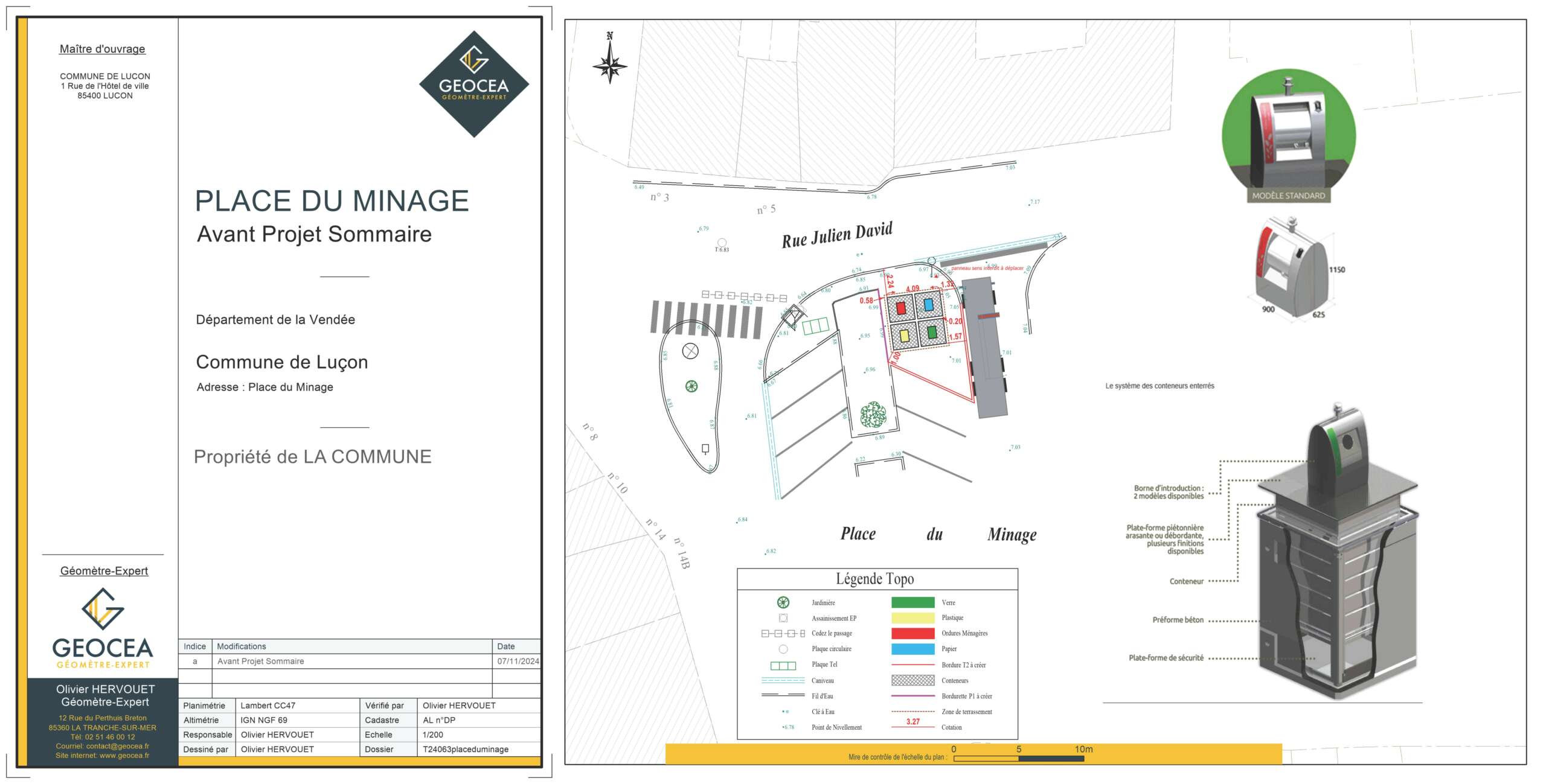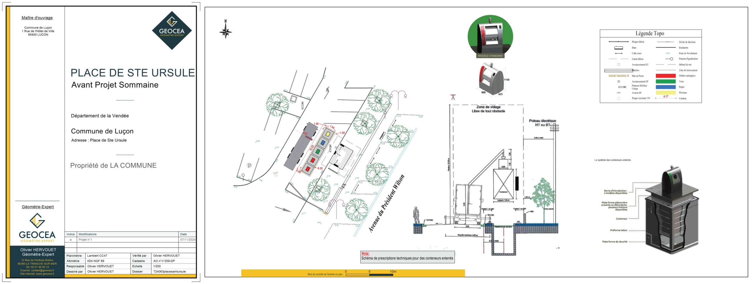 La Commune de Luçon a confié à GEOCEA la réalisation des avant-projets sommaires pour l’implantation de points d’apport volontaire en conteneurs semi-enterrés sur trois sites du centre-ville : la Place des Acacias, la Place du Minage et la Place de Sainte-Ursule.